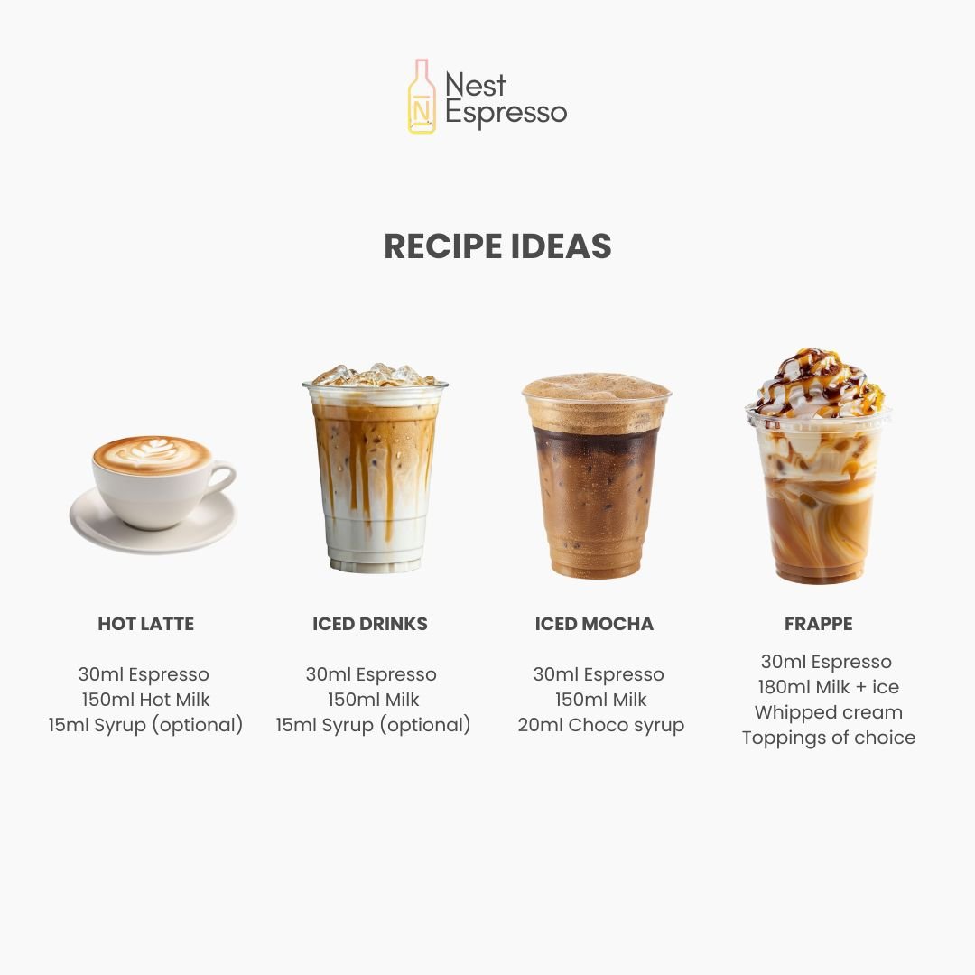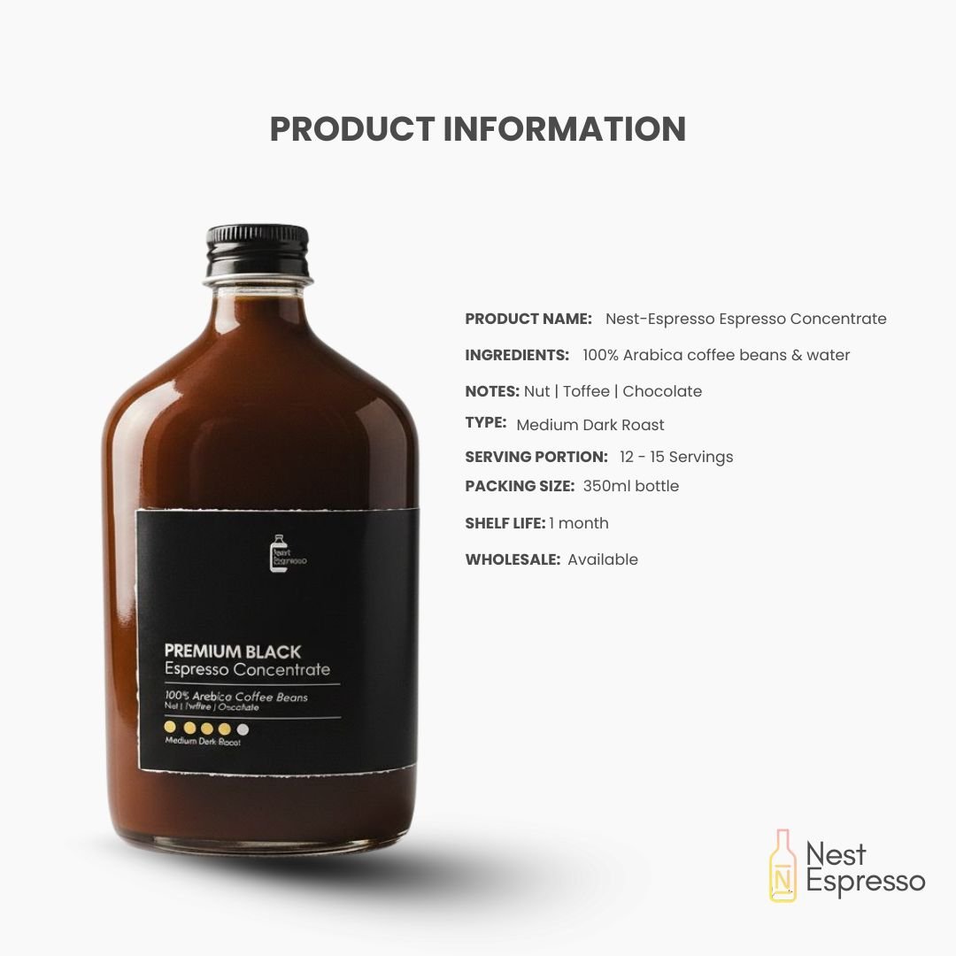 Experience café-quality coffee at home with Nest-Espresso — your ready-to-pour espresso base made from 100% Arabica beans. Smooth, aromatic, and rich in flavor, every sip brings out warm notes of nut, chocolate, and toffee.